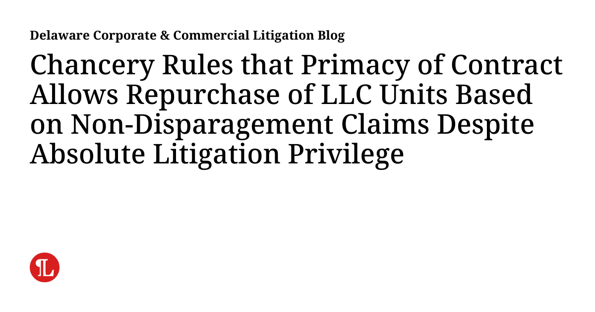 Chancery Rules that Primacy of Contract Allows Repurchase of LLC Units