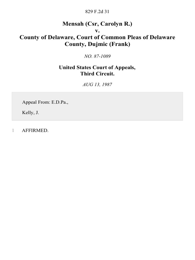 Mensah (CSR Carolyn R ) v County of Delaware Court of Common Pleas
