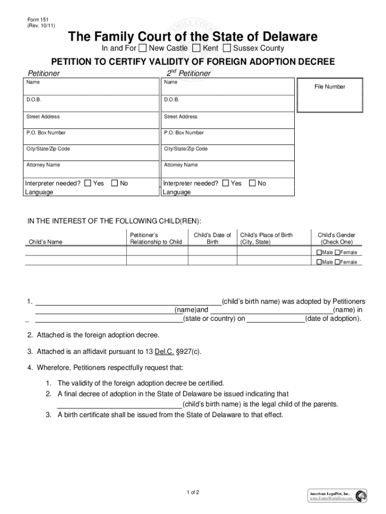 Fillable Online Petition For Foreign Adoption :: Delaware :: Family