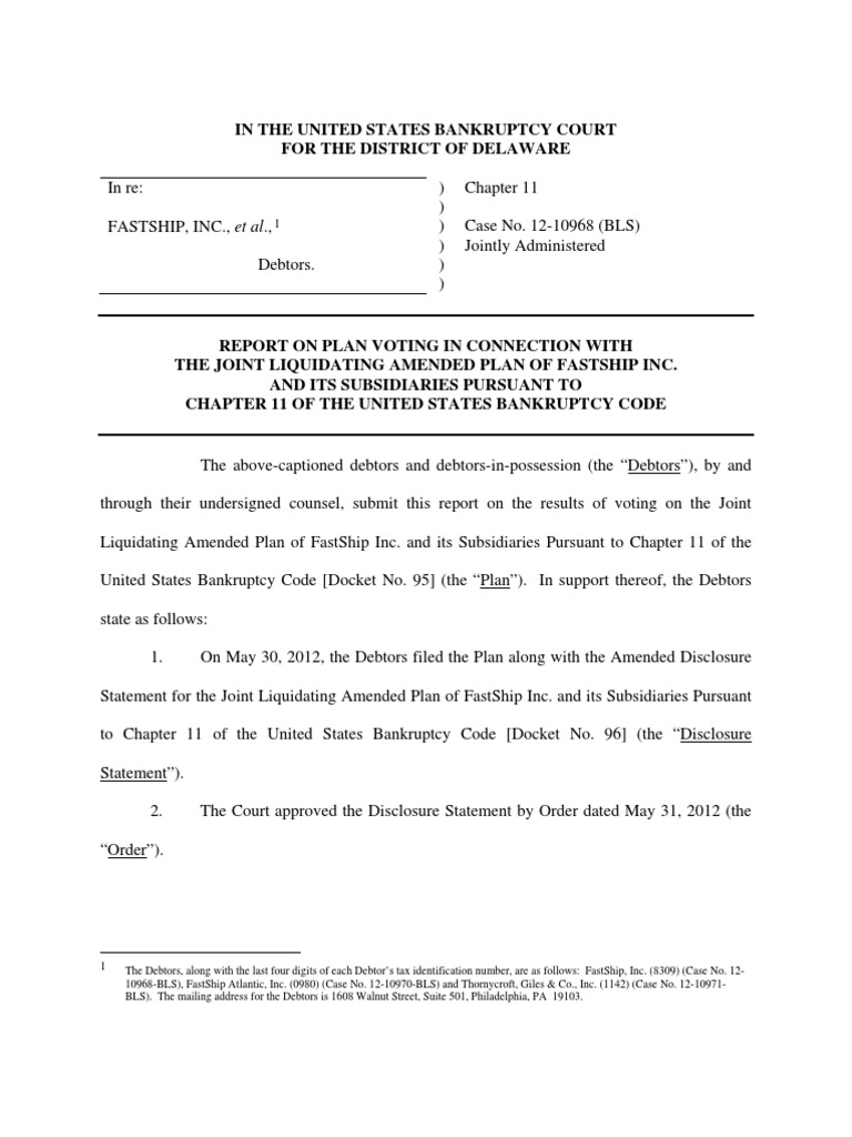 In The United States Bankruptcy Court For The District of Delaware