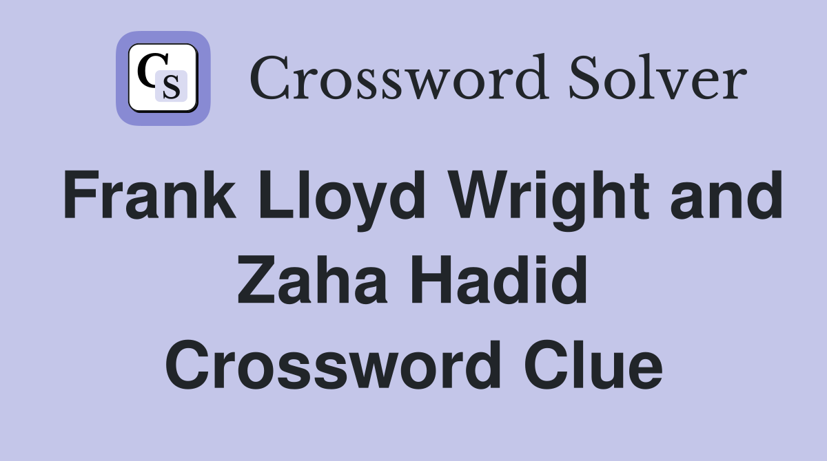 Frank Lloyd Wright and Zaha Hadid Crossword Clue Answers Crossword