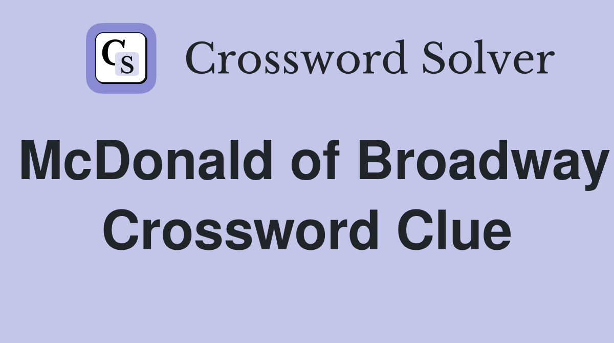 McDonald of Broadway Crossword Clue Answers Crossword Solver