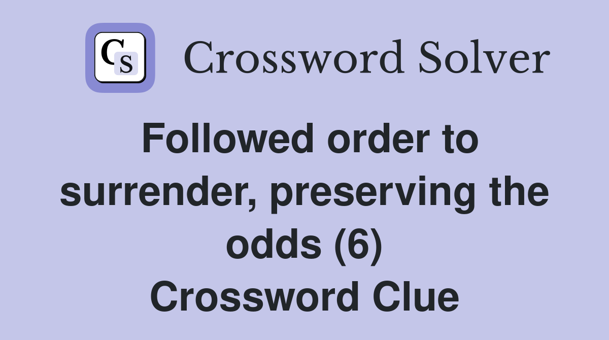 Followed order to surrender preserving the odds (6) Crossword Clue