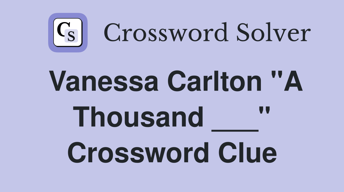 Vanessa Carlton quot A Thousand quot Crossword Clue Answers Crossword