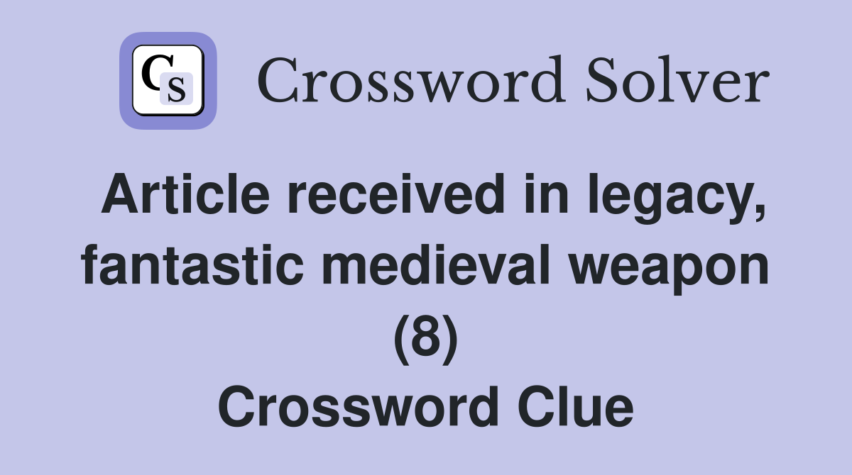 Article received in legacy fantastic medieval weapon (8) Crossword