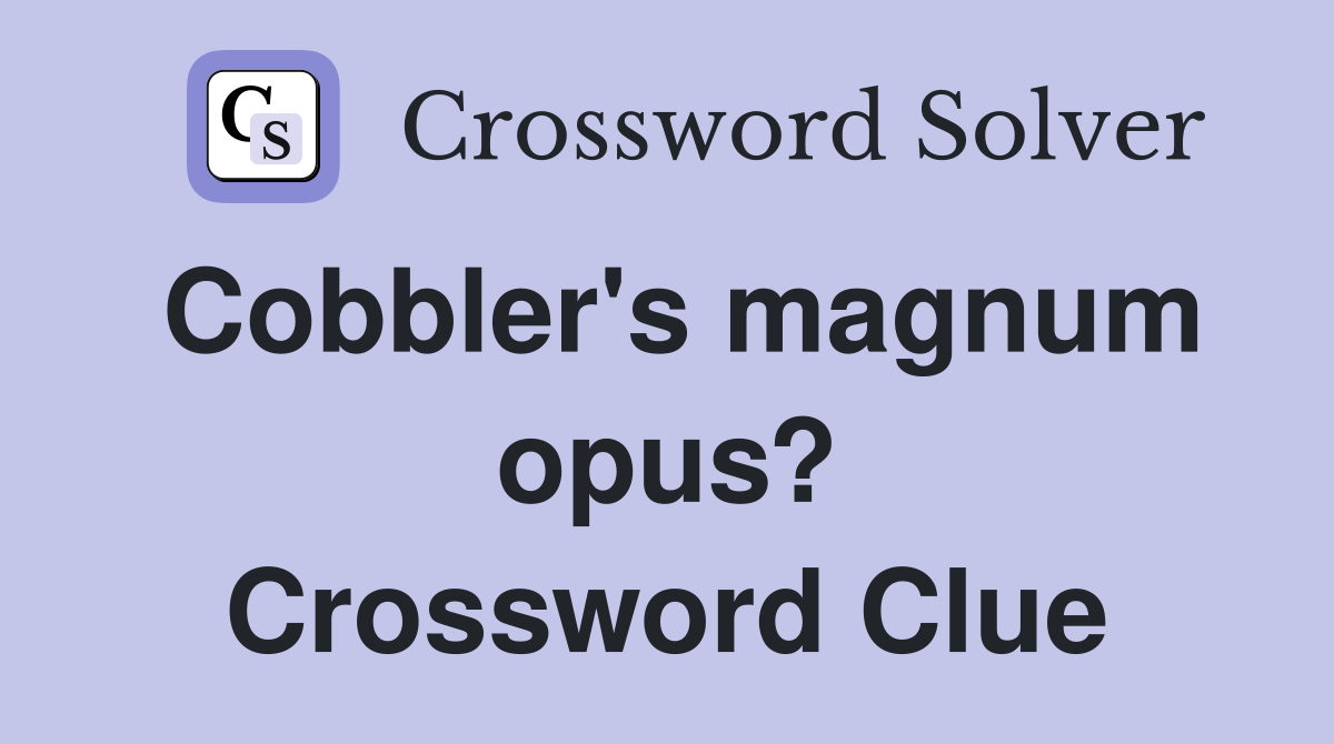 Cobbler #39 s magnum opus? Crossword Clue Answers Crossword Solver
