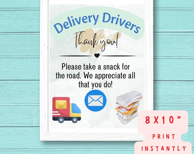 PRINTABLE Delivery Driver Snack Sign Instant Download Thank Etsy
