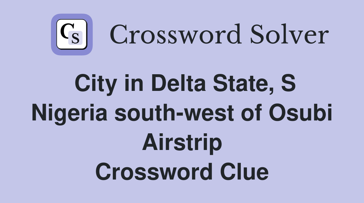 City in Delta State S Nigeria south west of Osubi Airstrip Crossword