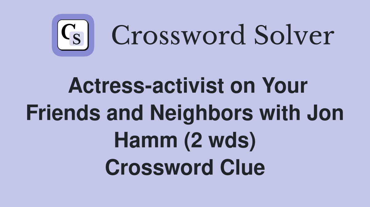 Actress activist on Your Friends and Neighbors with Jon Hamm (2 wds