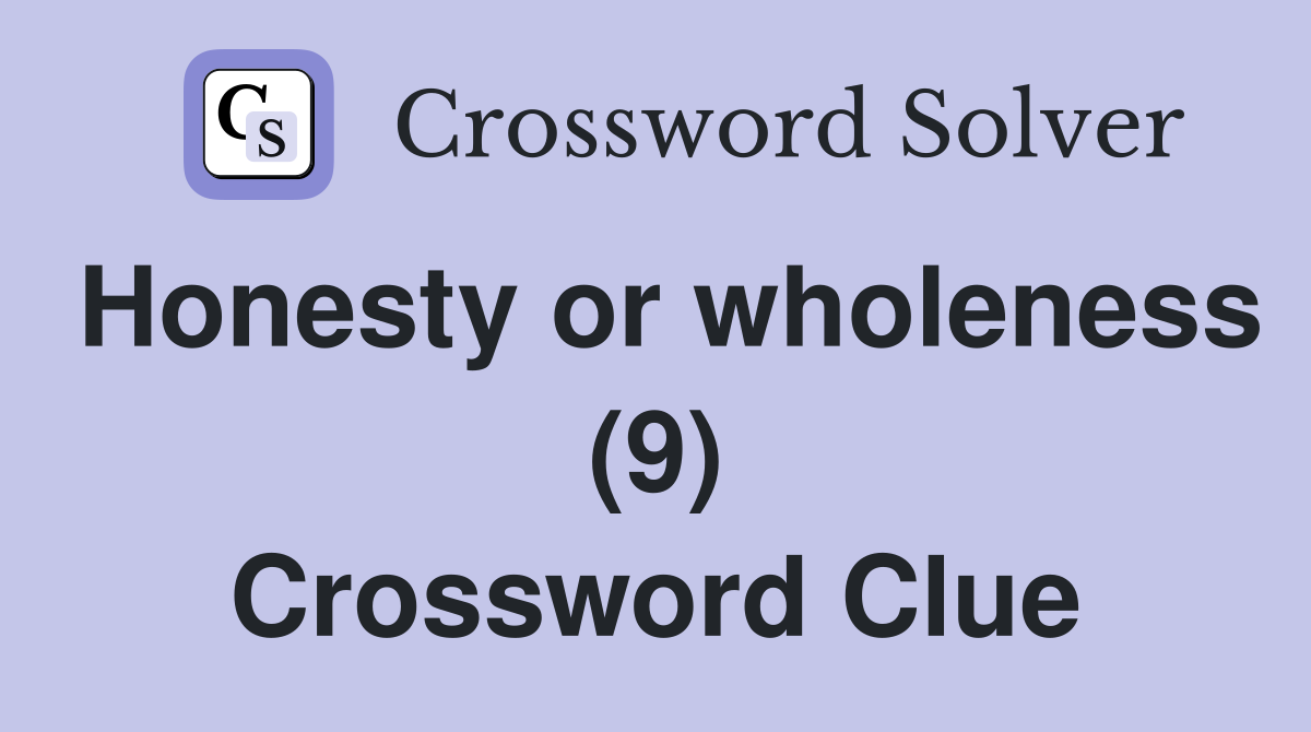 Honesty or wholeness (9) Crossword Clue Answers Crossword Solver