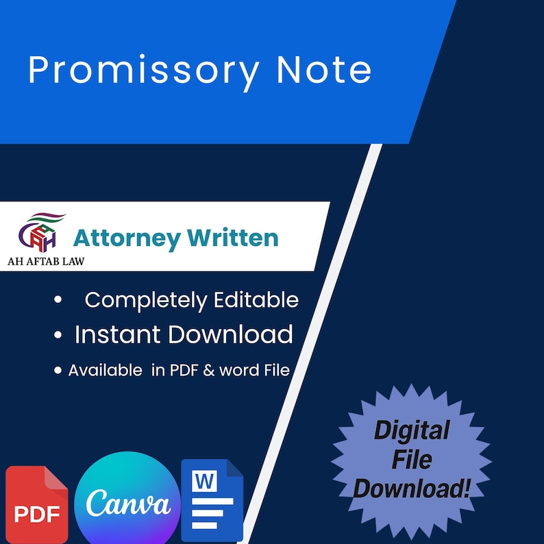 Custom Demand Promissory Note Template Legal Document Template for
