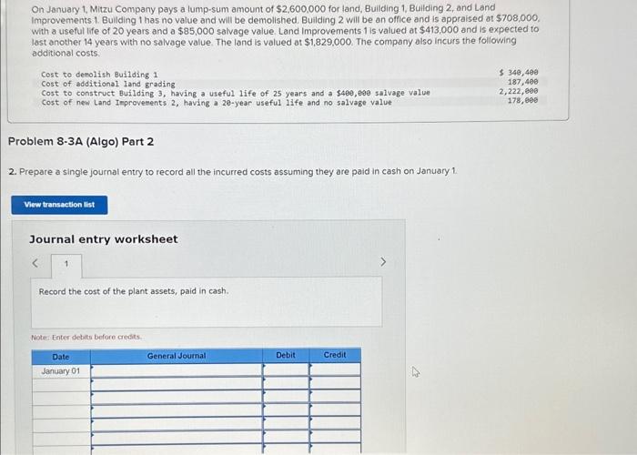 Solved On January 1 Mitzu Company pays a lump sum amount of Chegg com