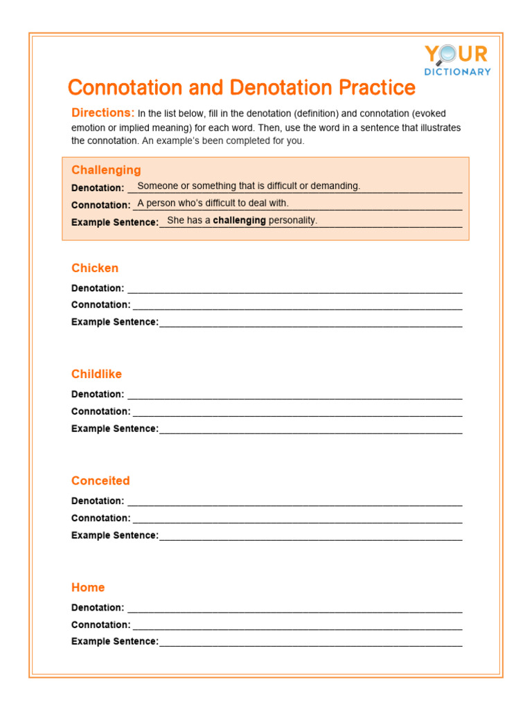 Connotation And Denotation Practice Worksheet