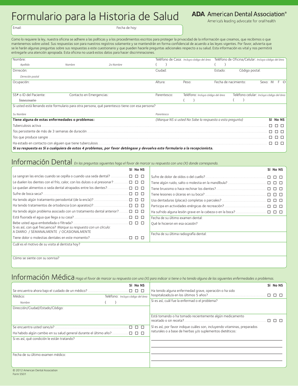 Formulario Para La Historia De Salud Dental American Dental