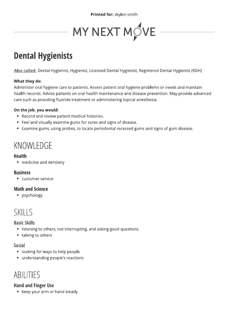 Dental Hygienist Job Profile PDF