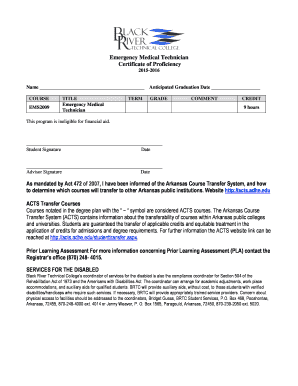Fillable Online blackrivertech Emergency Medical Technician Certificate