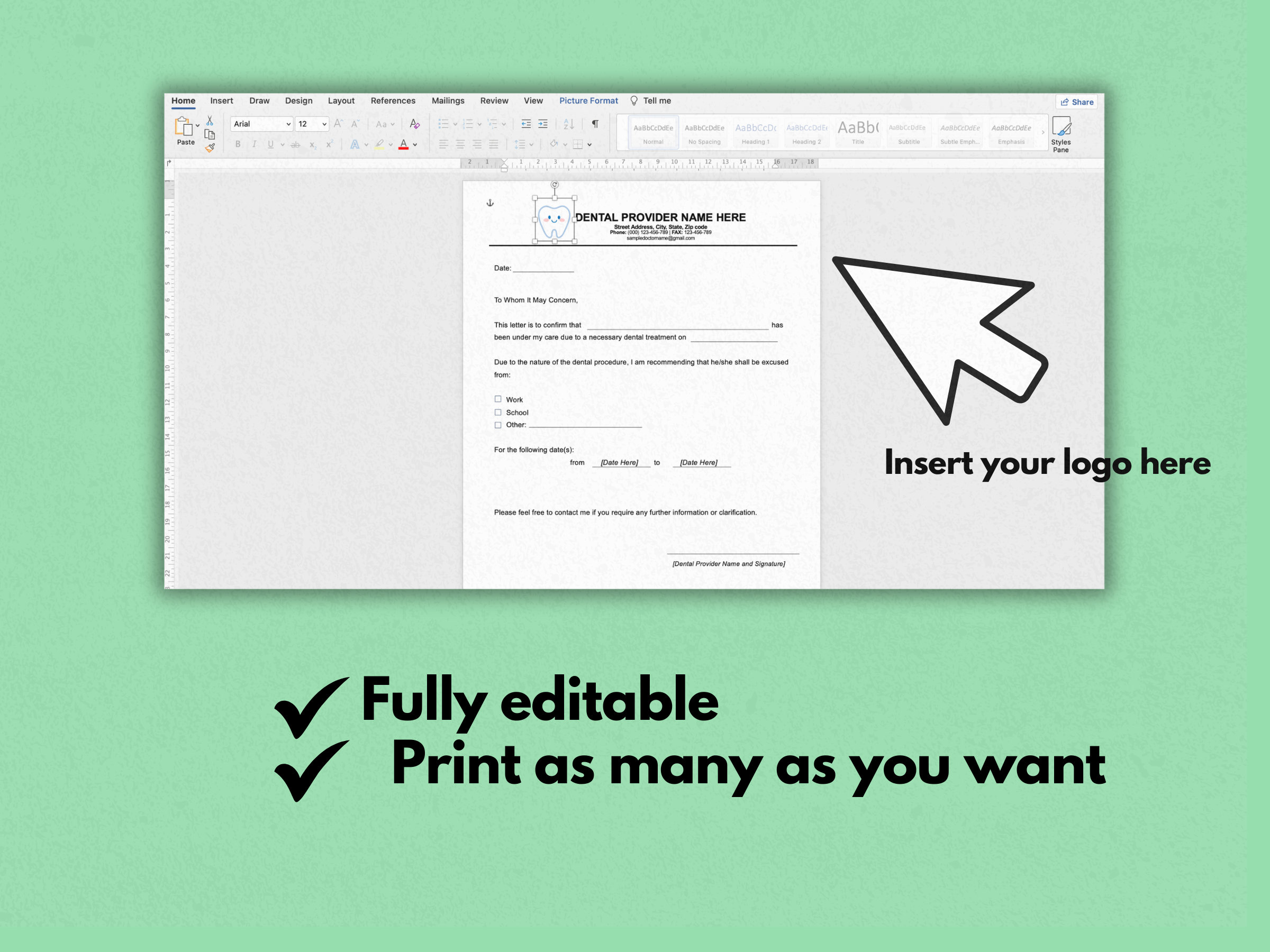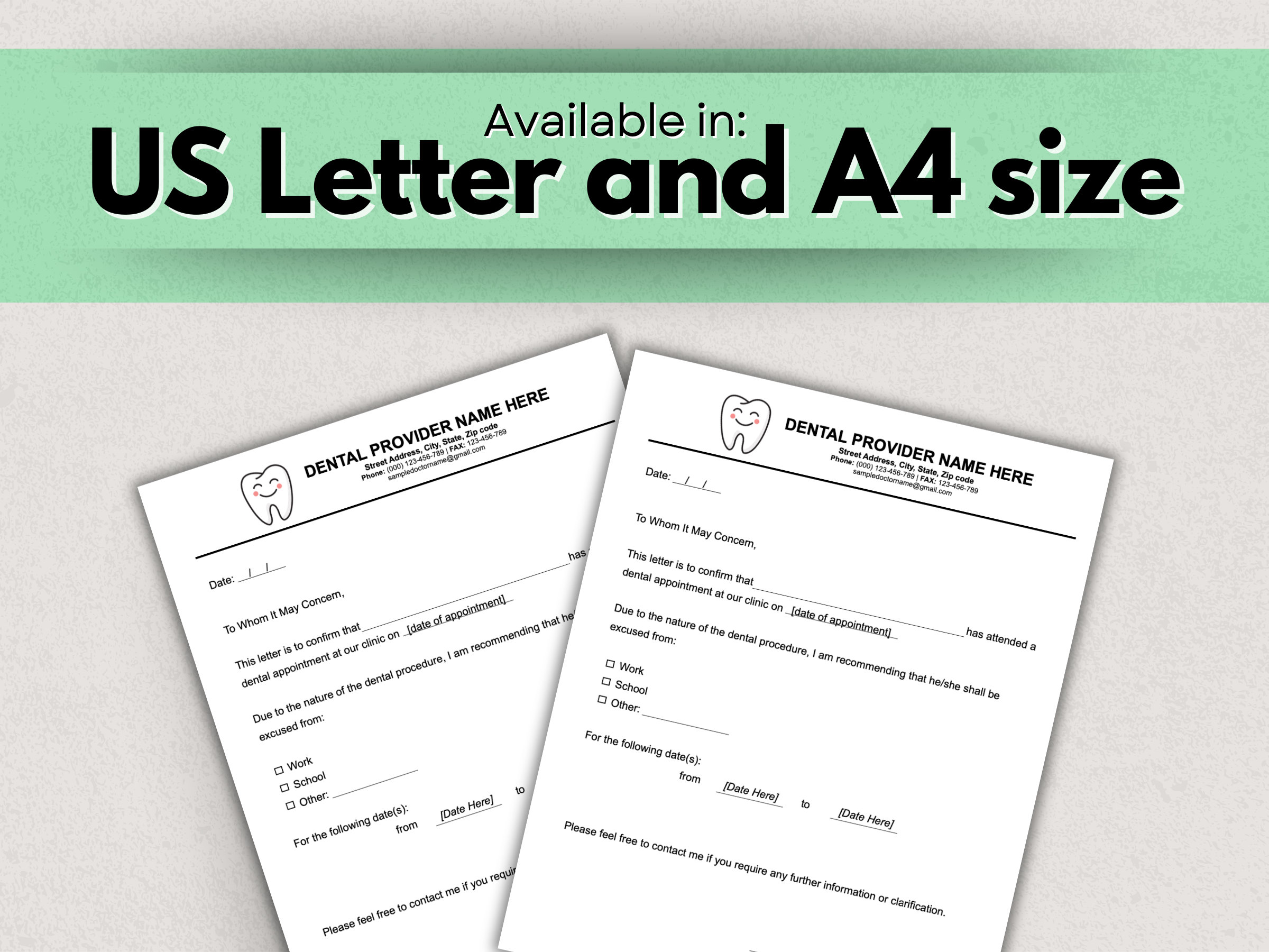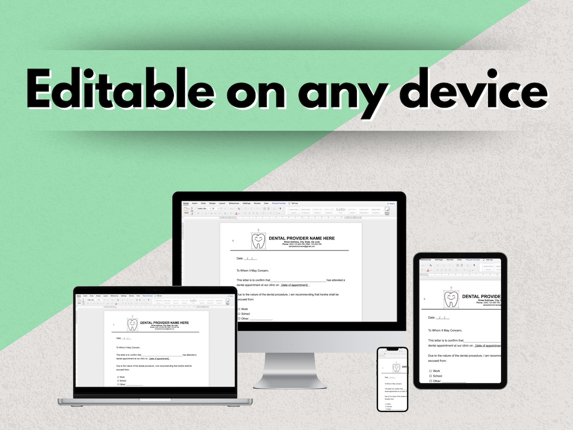 Custom Dentist Note Excuse PDF Template Set of 3 Orthodontic Etsy