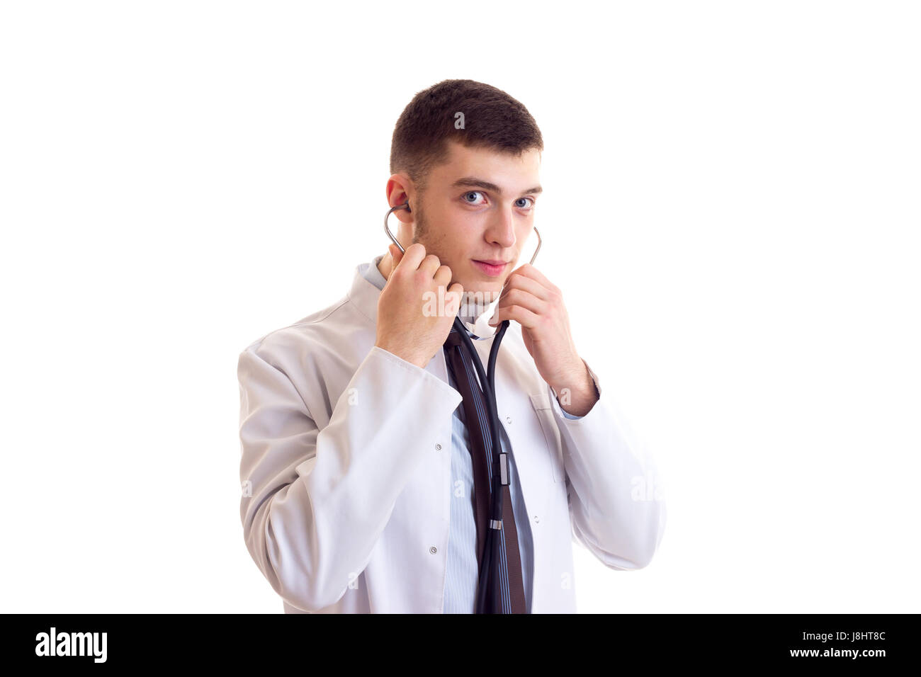 Face of a young male dentist on white studio background Stock Photo Alamy