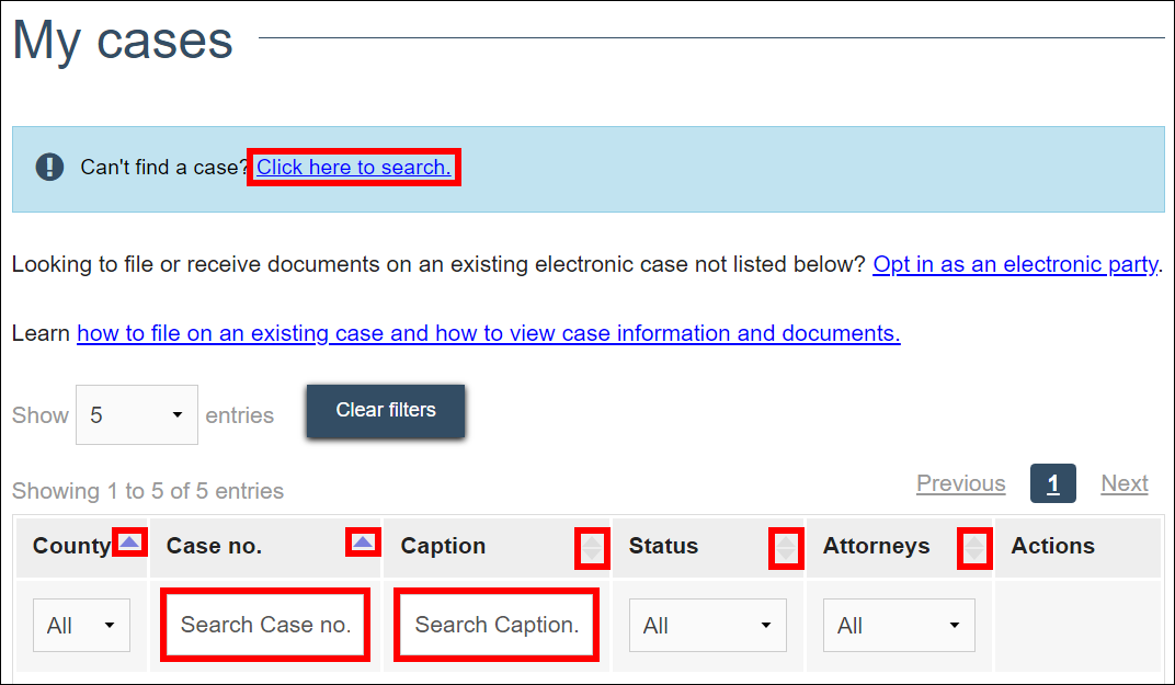 Circuit court eFiling Opting in on a case as a self represented (pro