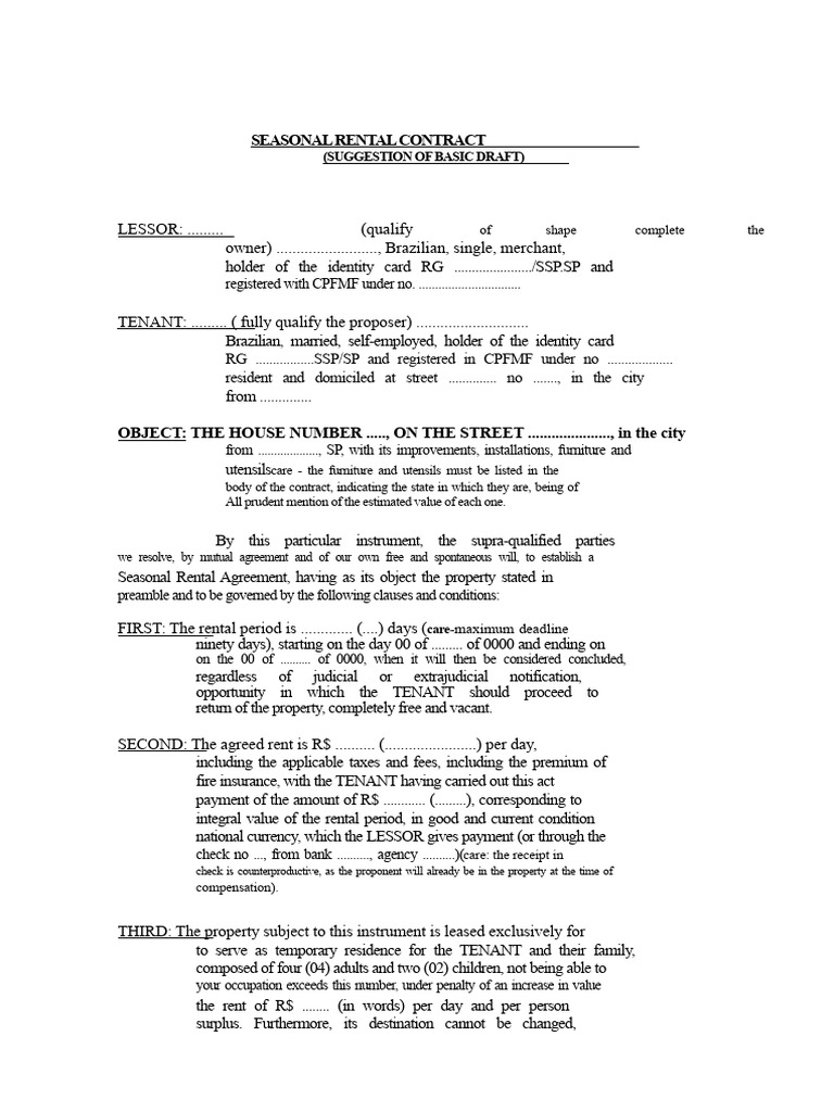 Seasonal Rental Agreement Template PDF Lease Common Law