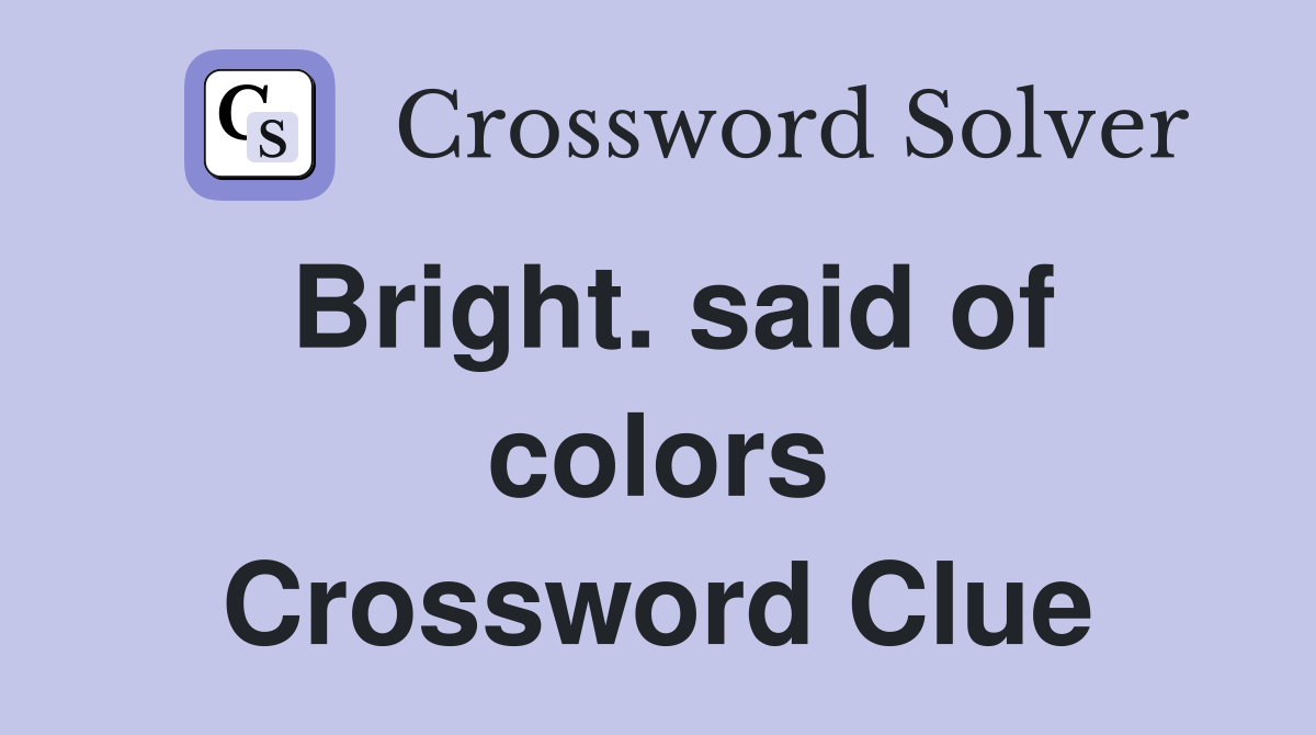 Bright said of colors Crossword Clue Answers Crossword Solver