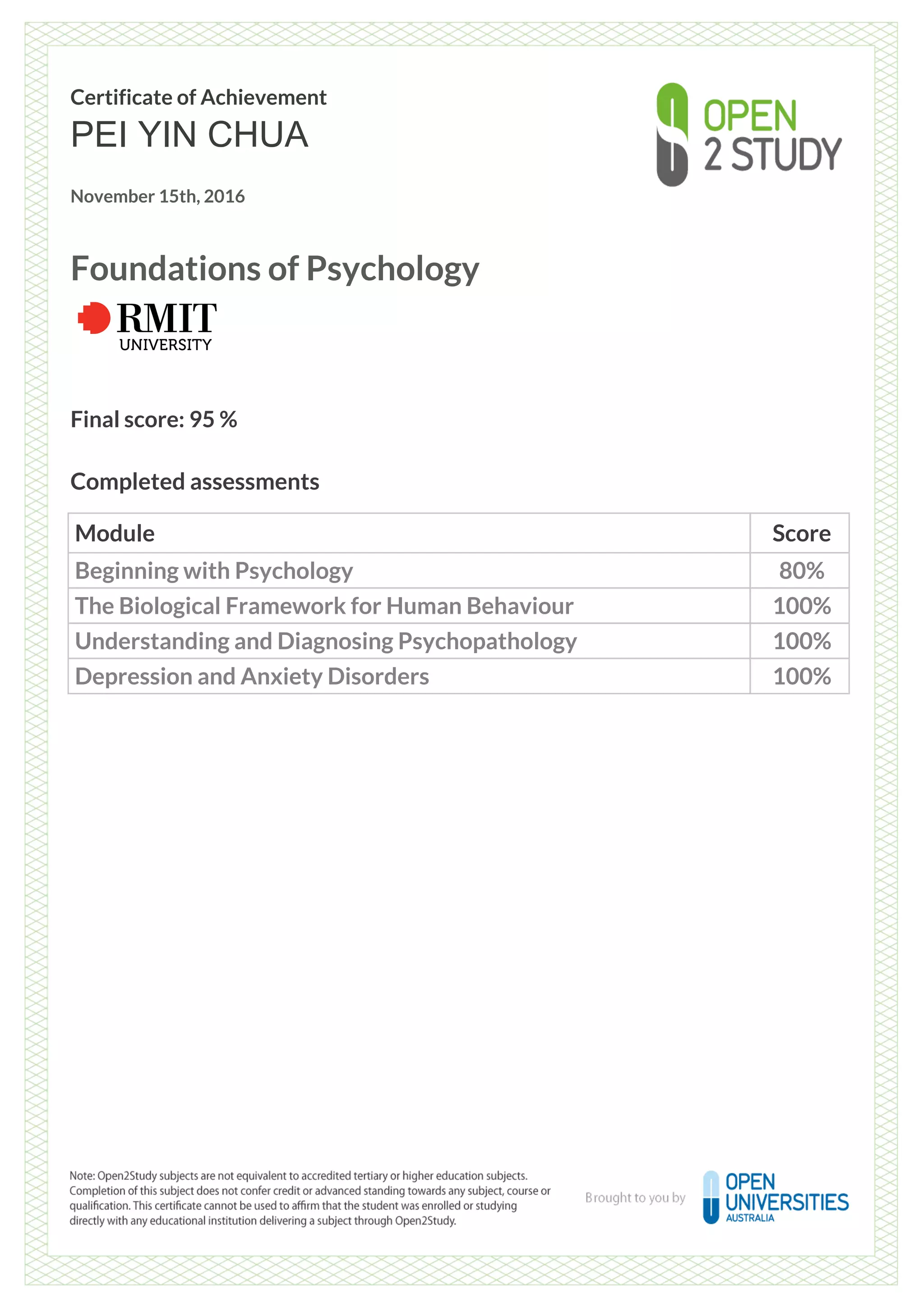 Foundations of Psychology Certificate PDF