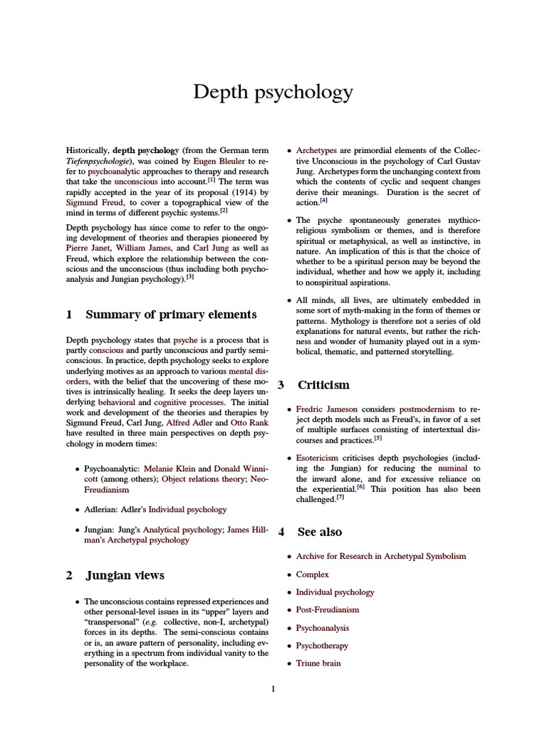Depth Psychology PDF Unconscious Mind Psychoanalysis