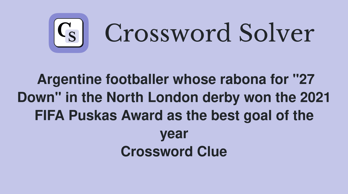 Argentine footballer whose rabona for quot 27 Down quot in the North London