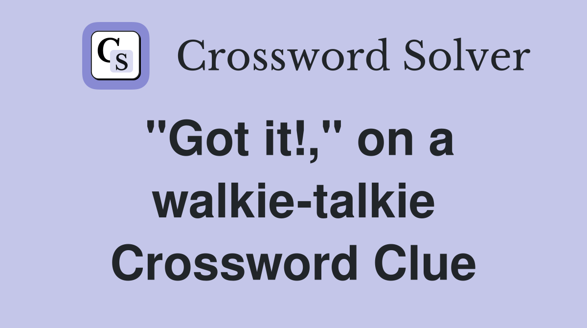 quot Got it quot on a walkie talkie Crossword Clue Answers Crossword Solver
