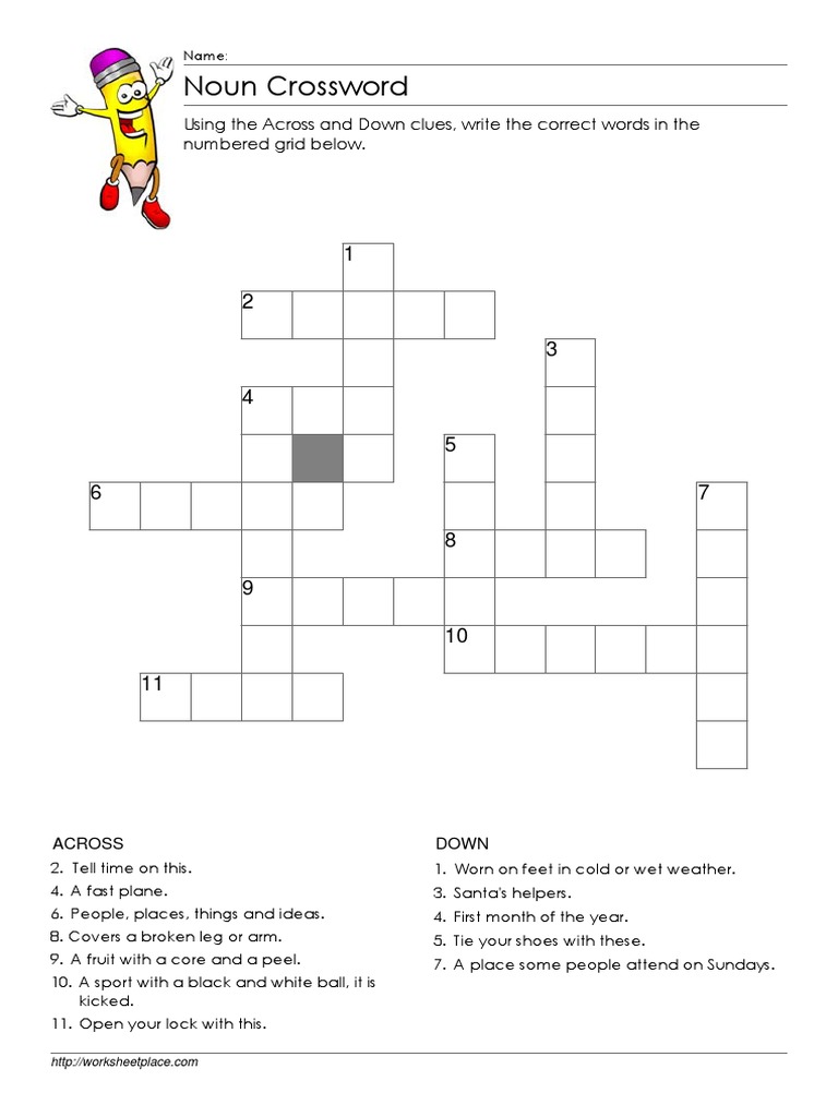 Noun Crossword: Using The Across and Down Clues Write The Correct