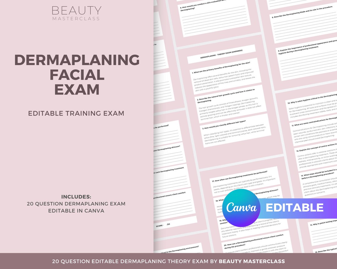 DermaplaningExam for Certification 20 Questions and Etsy