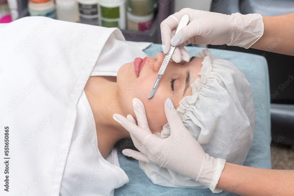 skin treatment with the dermaplaning technique performed with a scalpel