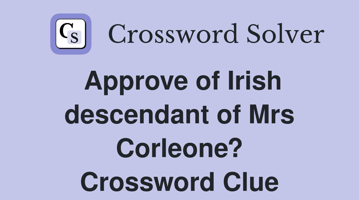 Approve of Irish descendant of Mrs Corleone? Crossword Clue Answers