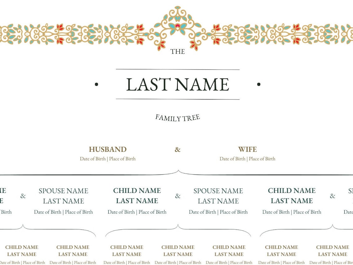 Editable Descendant Family Tree Template Genealogy Tree Multiple