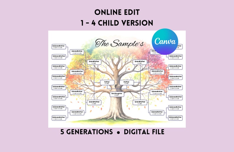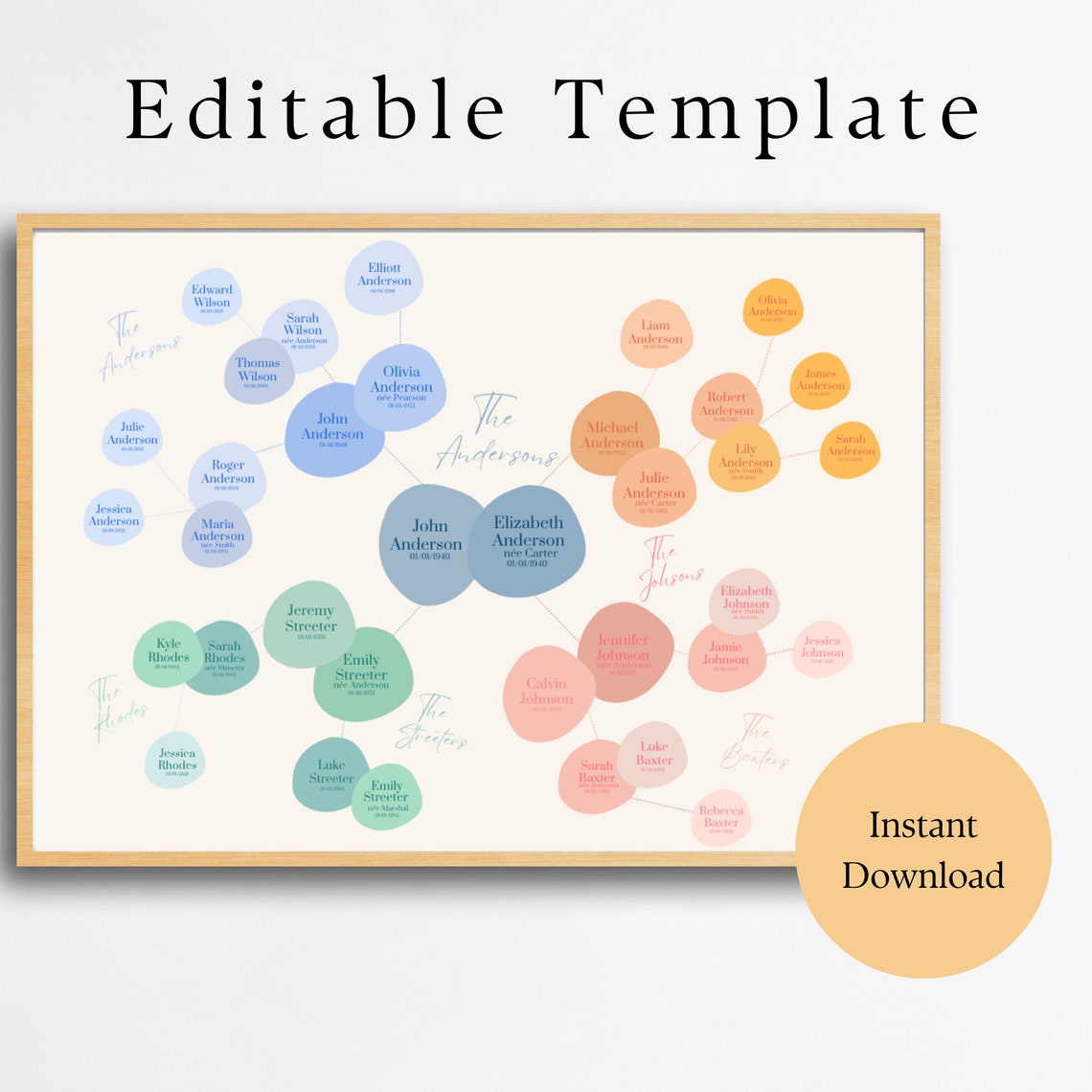 Editable Canva Descendant Family Tree Template Genealogy Chart Multiple