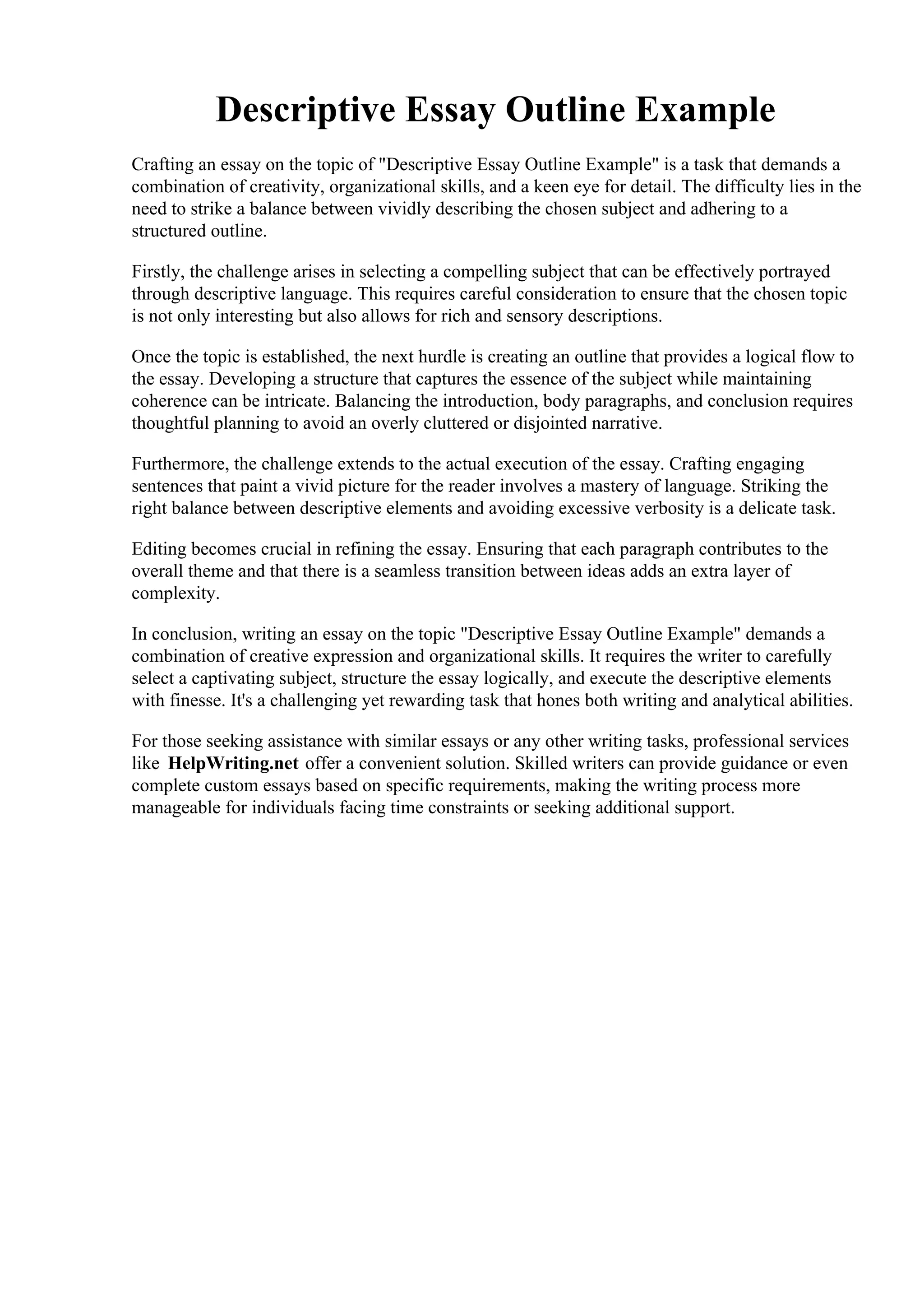 Descriptive Essay Outline Example pdf