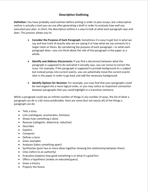 Writing a Descriptive Outline: Essay Analysis Guide