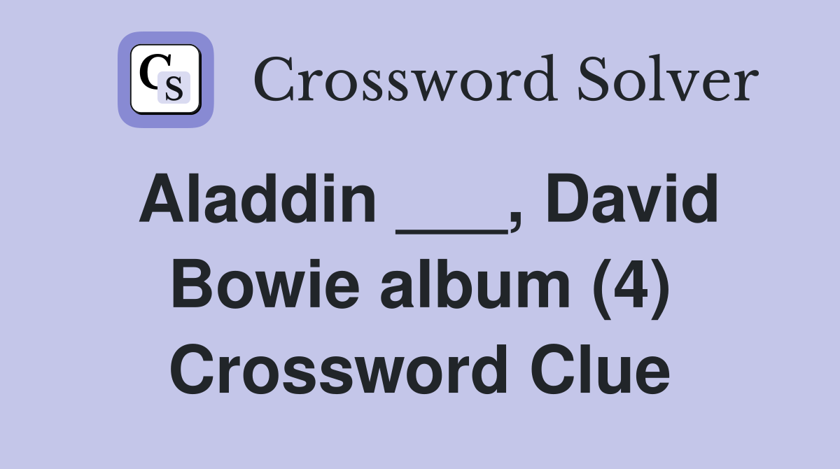 Aladdin David Bowie album (4) Crossword Clue Answers Crossword