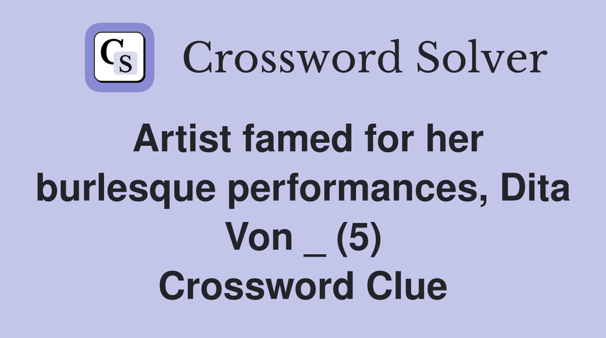Artist famed for her burlesque performances Dita Von (5) Crossword