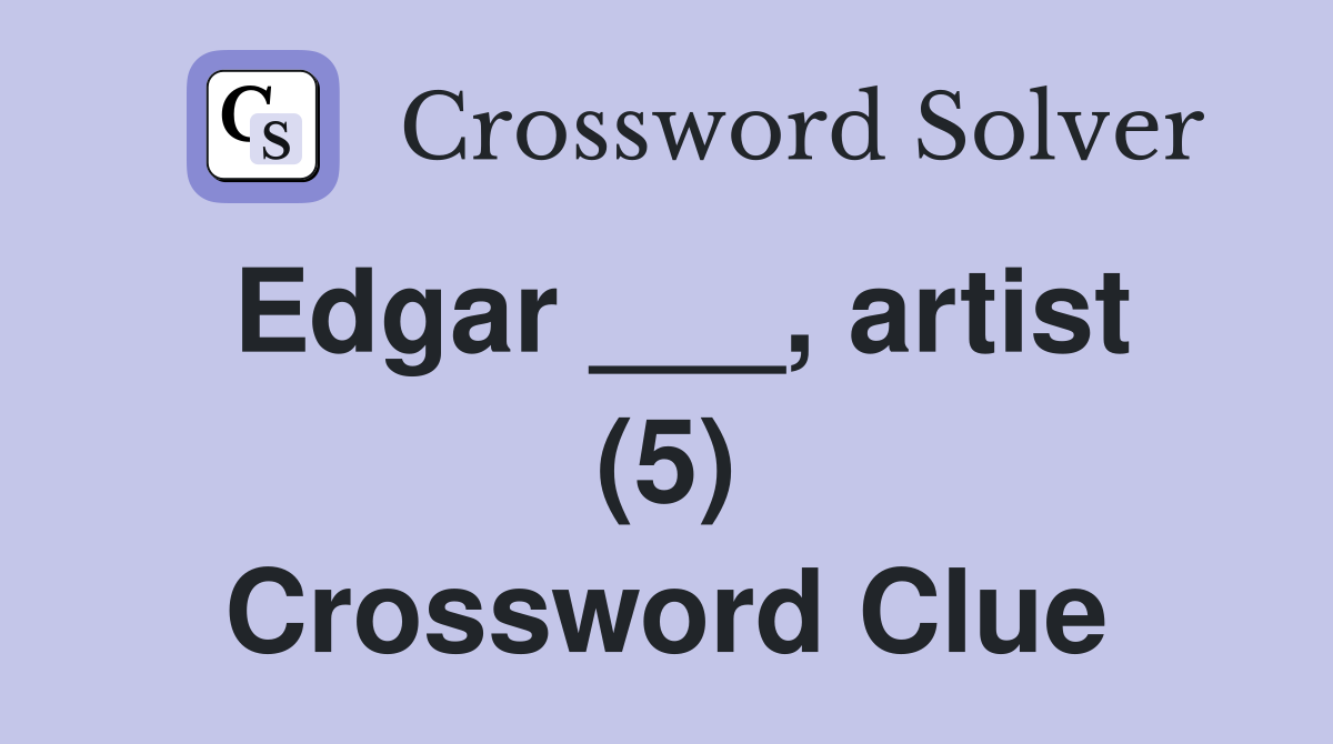 Edgar artist (5) Crossword Clue Answers Crossword Solver