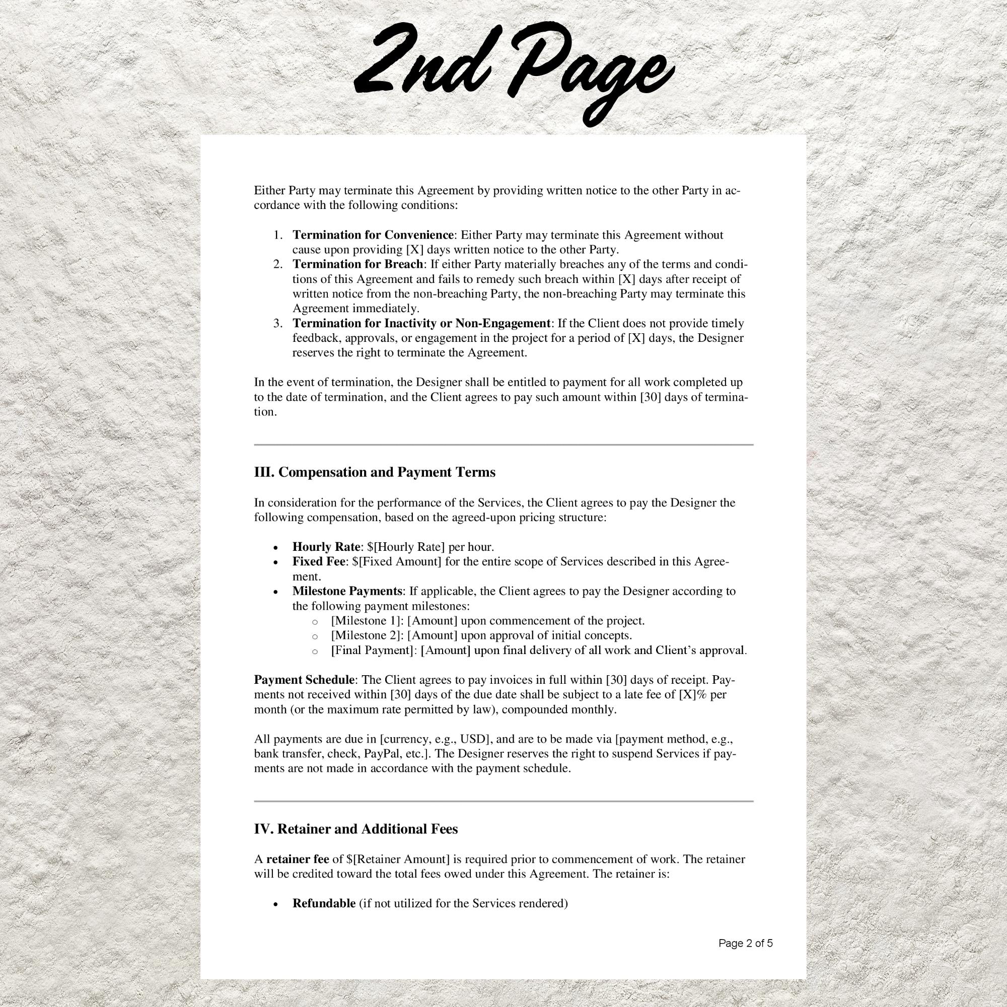 Graphic Design Contract Template Editable Instant Download
