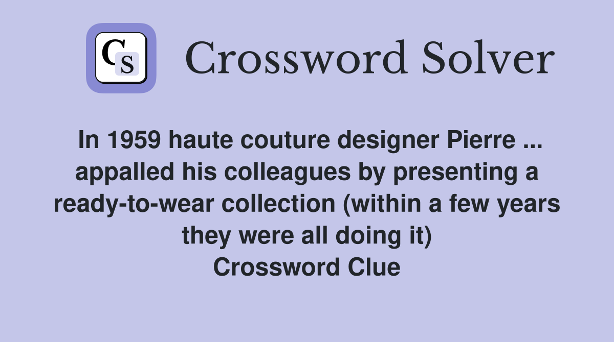 Here are some of the images for Designer Pierre Crossword Clue that we found in our website database.