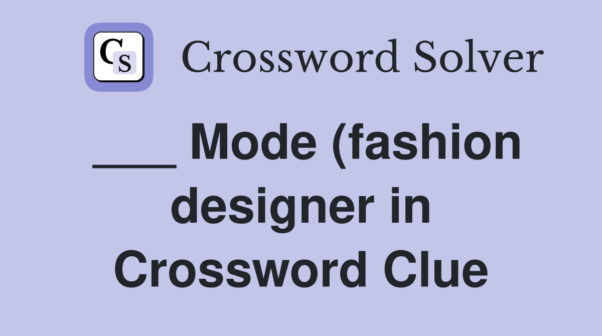 Mode (fashion designer in The Incredibles ) Crossword Clue Answers