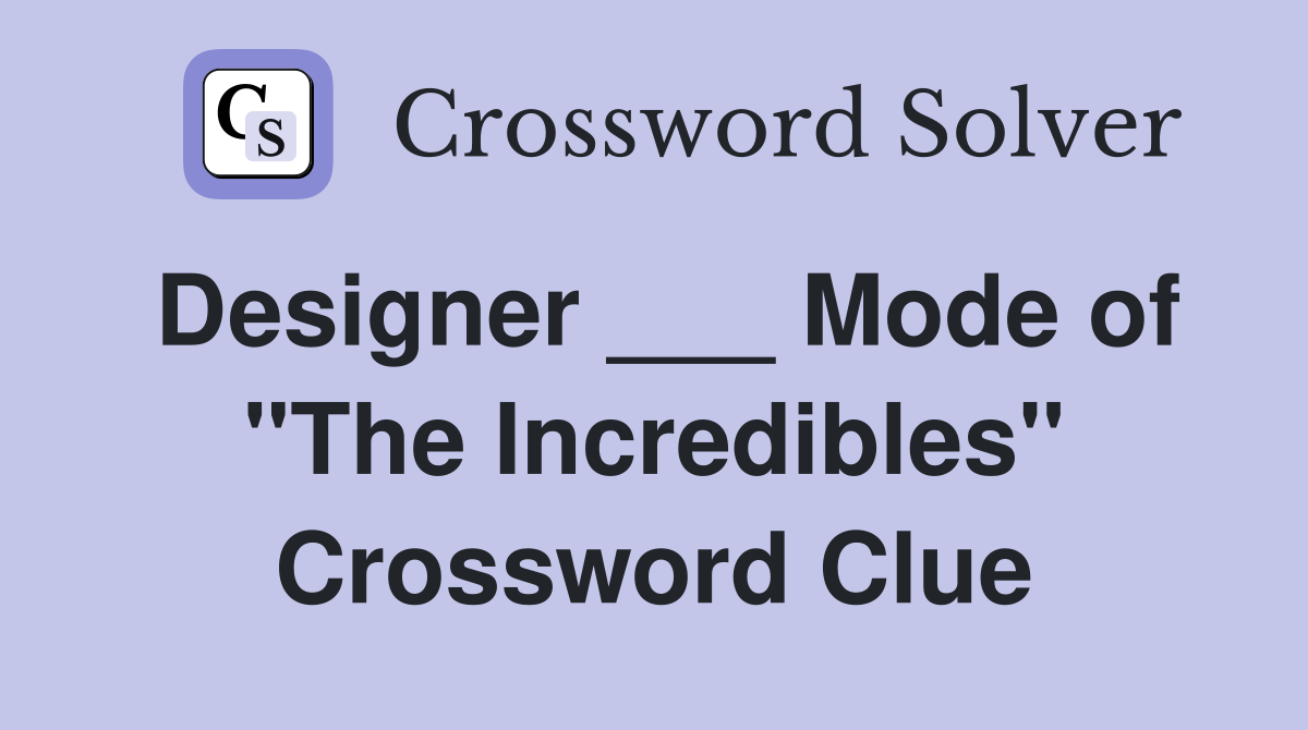 Mode fashion designer in quot The Incredibles quot Crossword Clue Answers