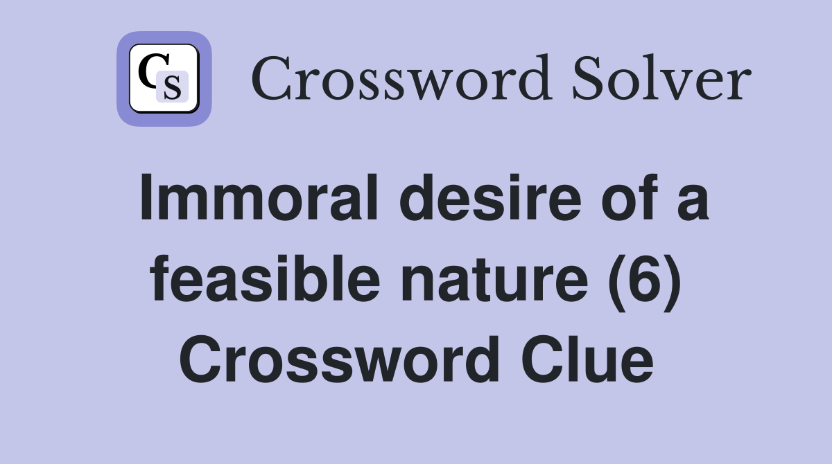 Immoral desire of a feasible nature (6) Crossword Clue Answers