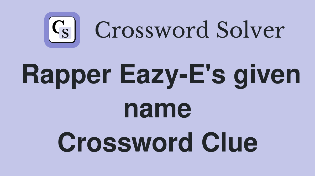 Rapper Eazy E #39 s given name Crossword Clue Answers Crossword Solver