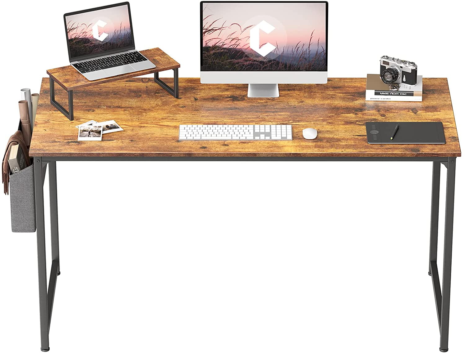CubiCubi 63 quot Computer Desk with Small Table and Storage Bag Rustic