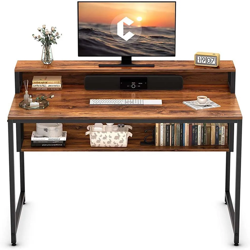SUGIFT 47 inch Tiered Shelves Home Office Computer Desk with Monitor