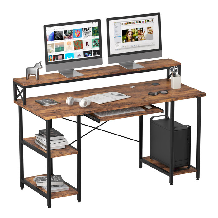 Computer Desk Industrial Study Desk with Shelves Monitor Stand