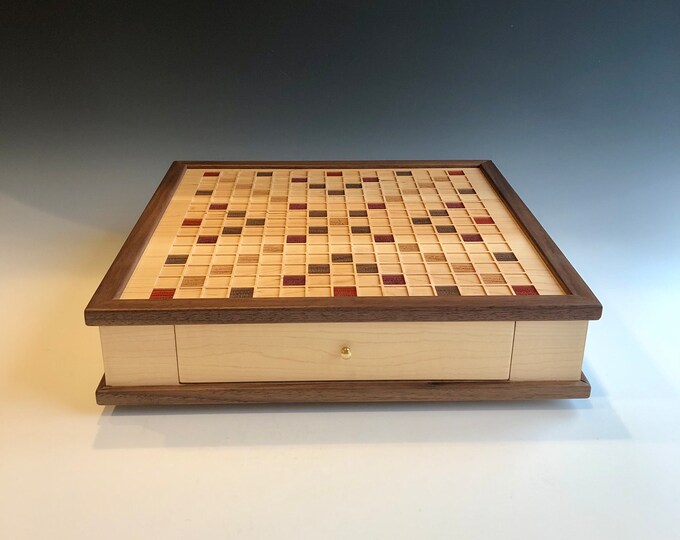 Walnut Curly Maple Wood Word Board Game With Raised Grid Drawer